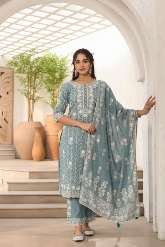 Dupatta: Lightweight chiffon dupatta with delicate print or subtle border detailing
